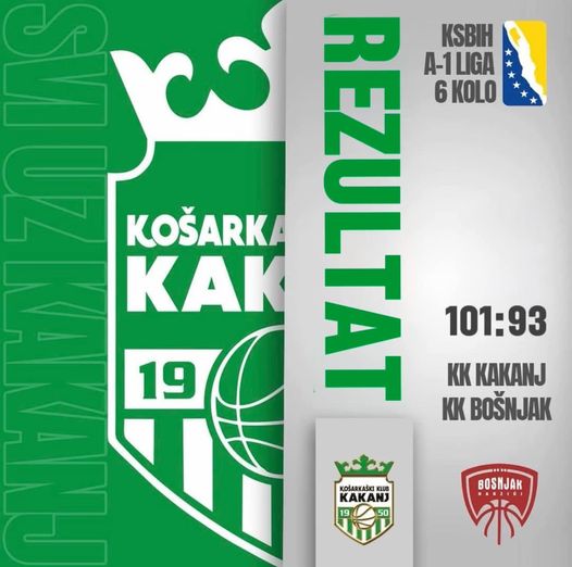 KK Kakanj je na domaćem parketu dočekao prvoplasiranu ekipu A1 lige KS BiH, Bošnjaka iz Hadžića.Sve periode osim prvog u kojem je rezultat bio neriješen, košarkaši Kaknja su riješili u svoju korist, što je na kraju rezultiralo pobjedom od osam poena razlike 101:93.