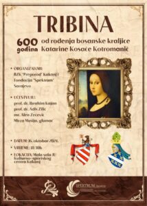 U cilju memorijalizacije našeg povijesnog naslijeđa, Bošnjačka zajednica kulture ˝Preporod˝ Kakanj i Fondacija ˝Spektrum˝ Sarajevo u našem gradu organiziraju tribinu ˝600 godina od rođenja bosanske kraljice Katarine Kosače Kotromanić˝.
