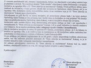 Izražavamo naše nezadovoljstvo zbog neosnovanog prisvajanja zasluga za trud i rad zaposlenika i menadžmenta JU Dom zdravlja sa stacionarom Kakanj. Lift se gradi isključivo iz vlastitih sredstava ove ustanove, što je rezultat predanog rada i zalaganja njenih radnika i menadžmenta.
